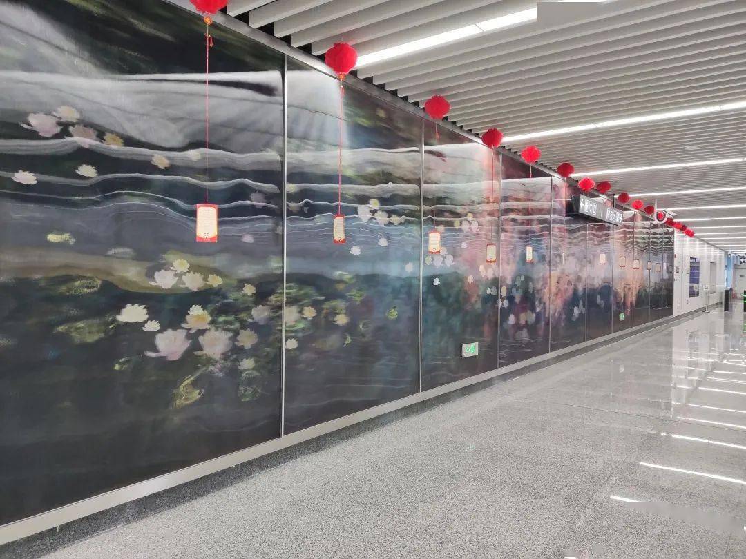 站廳東側(cè)的“清氣滿乾坤”蓮花互動墻由光柵板打造,路過的行人會看到爭相盛開、姿態(tài)各異的蓮花,以蓮寓廉。